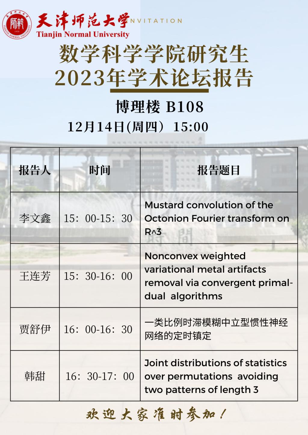 【预告】学术报告(2023-41)12月14日—3003新葡官方网站研究生2023年学术论坛报告