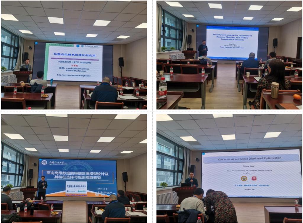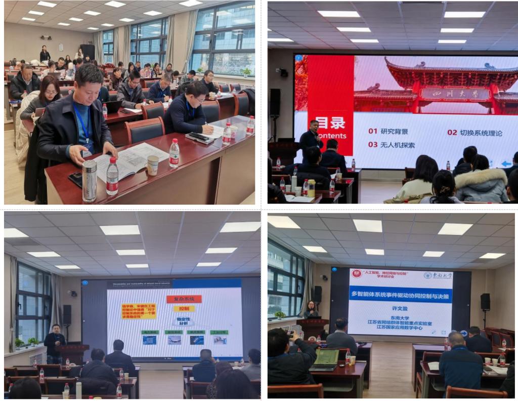研讨会上,四川大学杨鑫松教授、中国矿业大学朱松教授、东南大学许文盈教授和杨绍富教授、中国石油大学(华东)王健教授、中国地质大学(武汉)王雷敏教授、哈尔滨工业大学(威海)秦泗甜教授以及3003新葡3003新葡官方网站周立群教授和刘娜博士等多位专家学者围绕切换系统协同控制、忆阻系统理论及应用、多智能体系统协同控制与决策、复杂神经网络同步控制、神经动力学优化理论和算法等介绍了各自领域的最新研究进展及研究成果。参会人员认真听取报告,并从科学问题、交叉合作和应用研究等方面与各位报告人展开了热烈讨论。