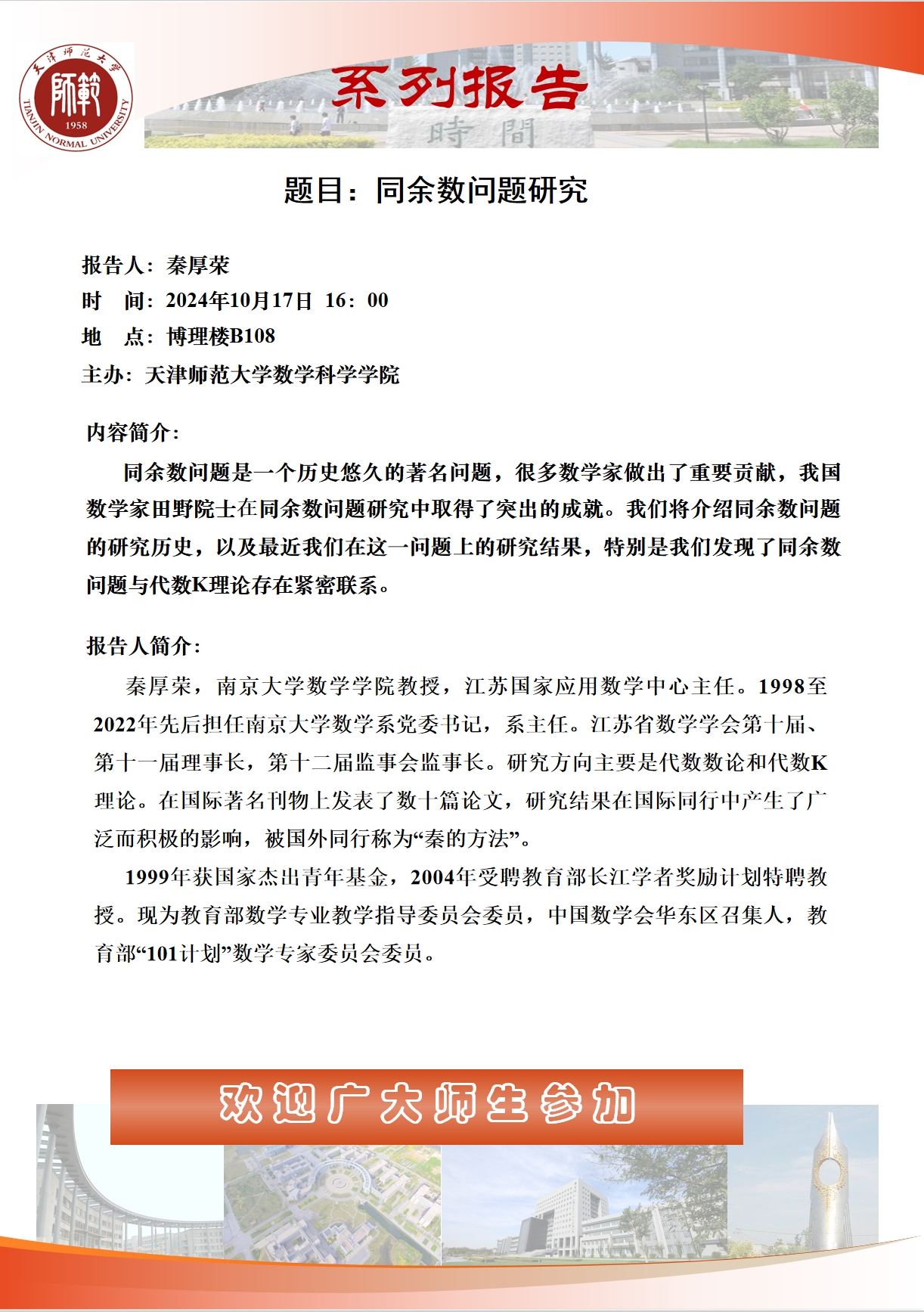 【预告】学术报告(2024-18)10月17日——题目:同余数问题研究